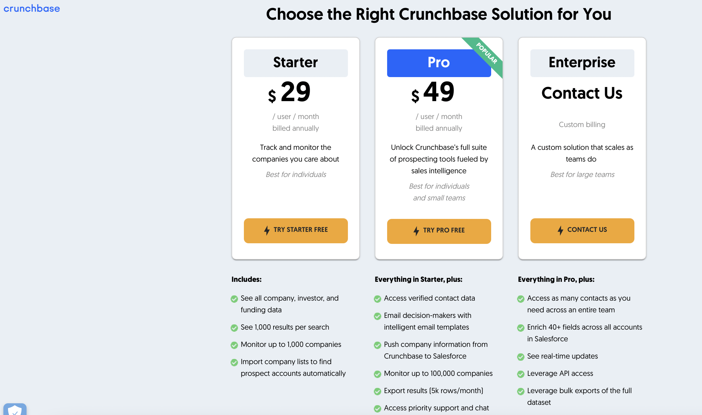 Here are the pricing options for Crunchbase.