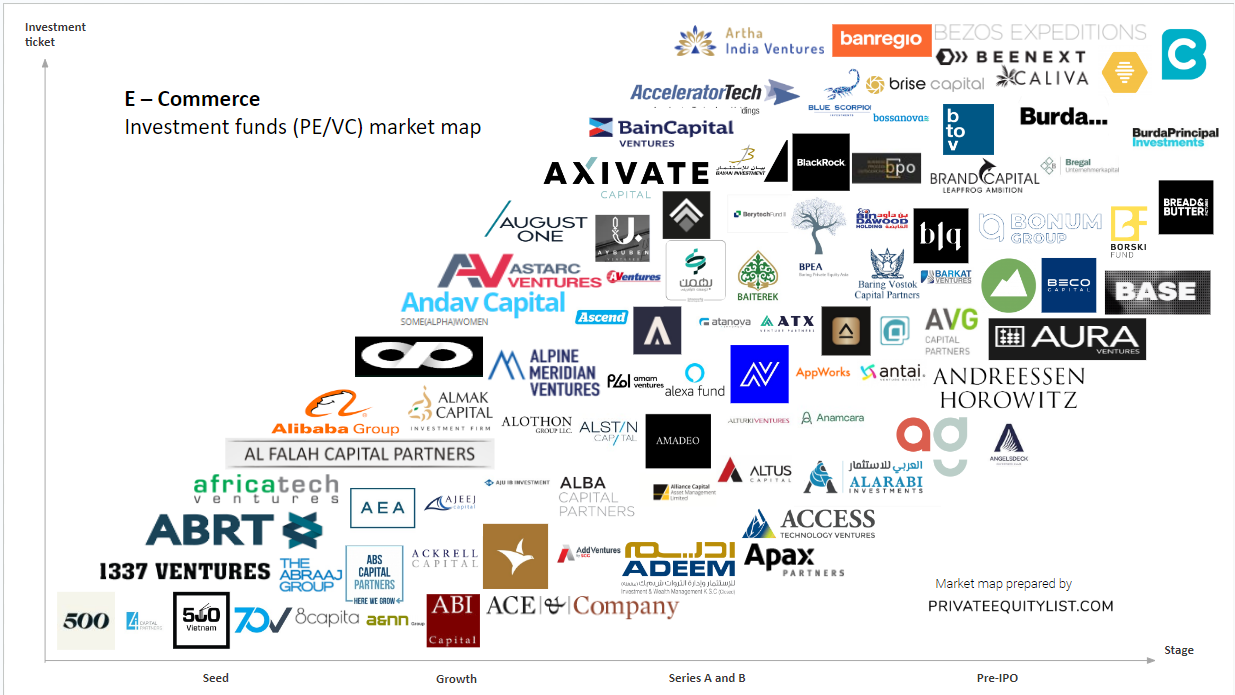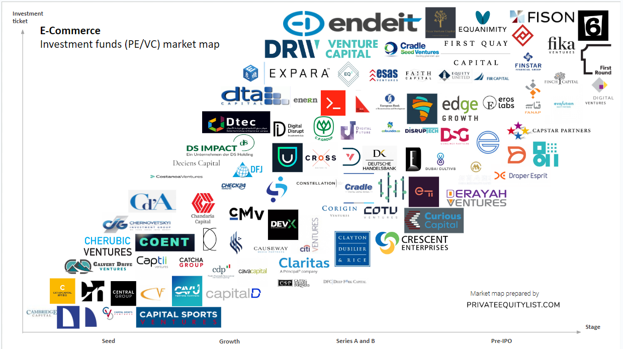For more information on E-Commerce investment funds (their investment criteria, funds sizes, region preferences and etc.) go to PE/VC E-Commerce funds database on privateequitylist.com