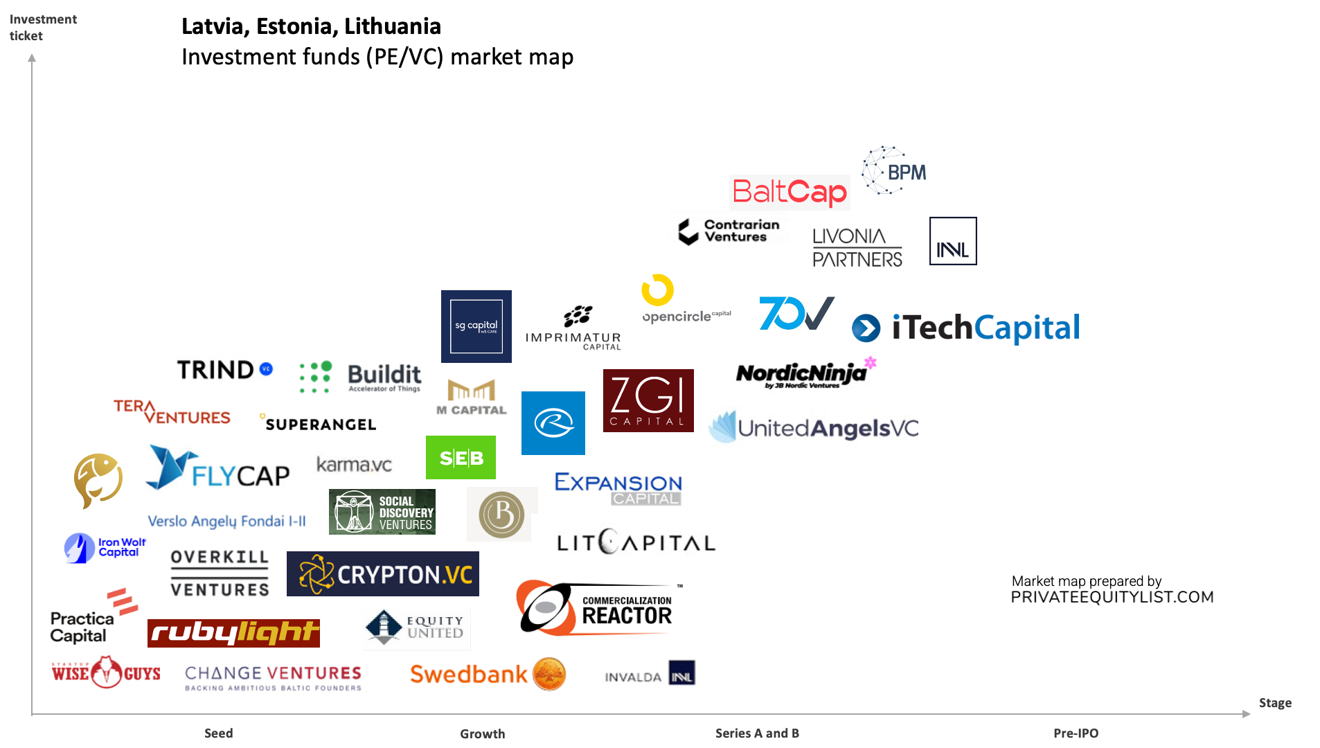 We compiled an extensive Latvia, Estonia, and Lithuania private equity (PE) and venture capital (VC) market map that shows key Latvia, Estonia, and Lithuania investors and investment funds. We hope this is useful for your startup fundraising. Find below the list of investors from the market map and links to their websites.
