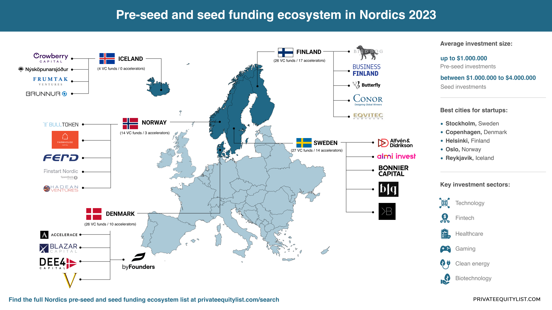 The Nordics have a diverse startup ecosystem, with key sectors including: