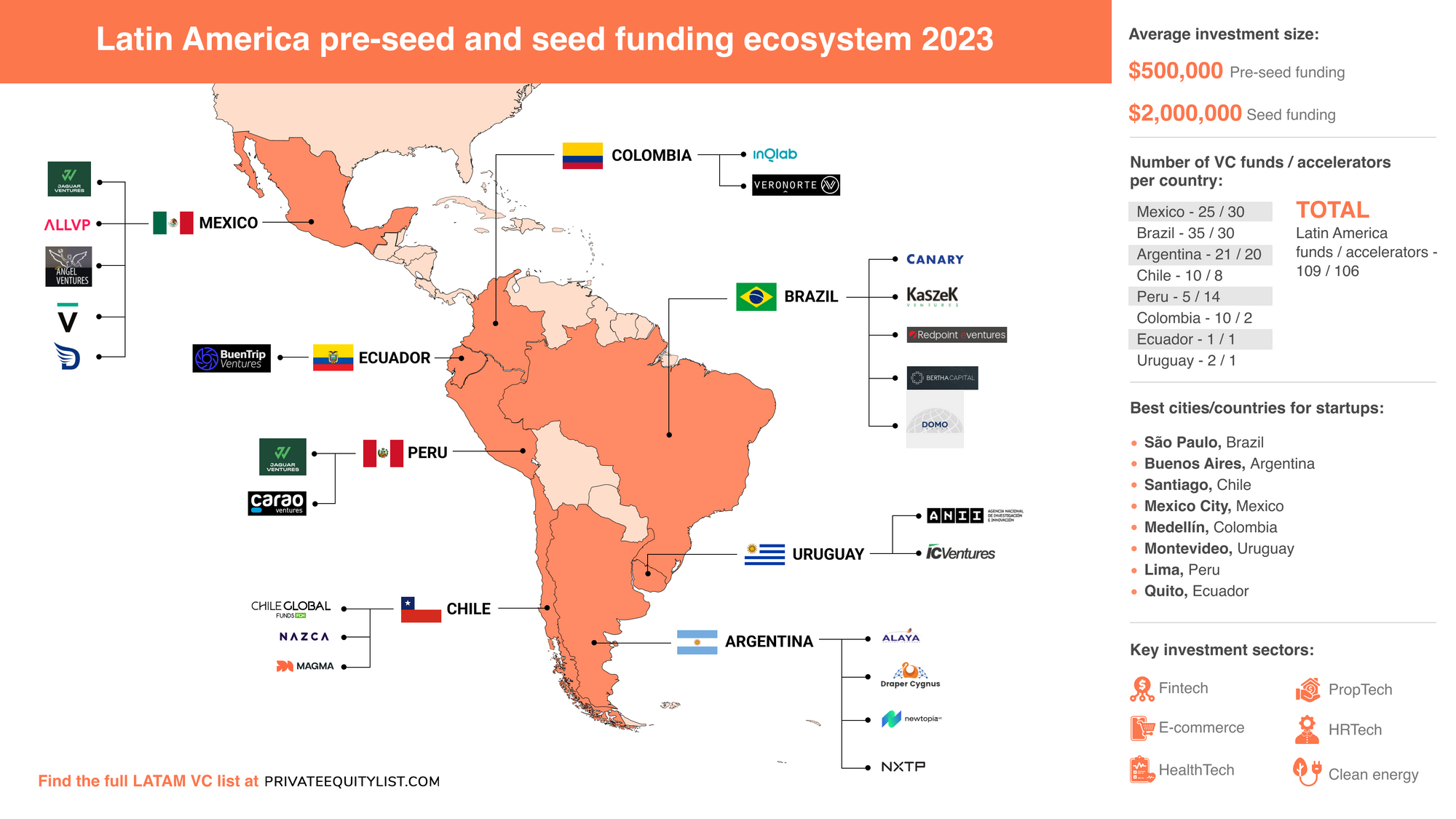 In this blog post, we will delve into the funding statistics, average investment sizes, key investment sectors, and explore the pre-seed and seed funding landscape in nine Latin American countries: Mexico, Brazil, Argentina, Chile, Peru, Colombia, Ecuador, and Uruguay.