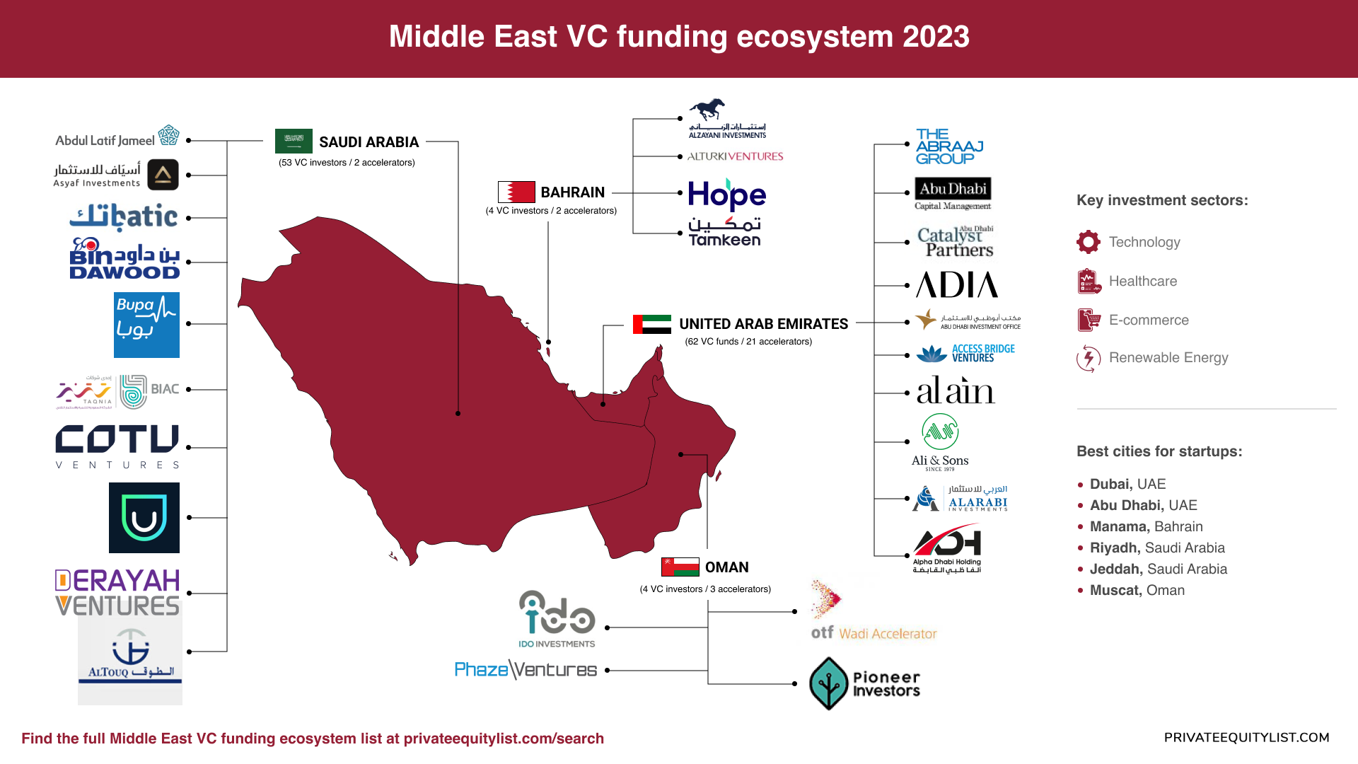 In the dynamic landscape of the Middle East, the venture capital (VC) scene has experienced a remarkable surge in recent years. With a burgeoning entrepreneurial spirit and government initiatives supporting innovation, countries like the United Arab Emirates (UAE), Bahrain, Saudi Arabia, and Oman have become hotbeds for startups seeking funding and growth. In this comprehensive guide, we'll explore the funding statistics, average investment sizes, key sectors, and dive into each country's unique VC ecosystem.